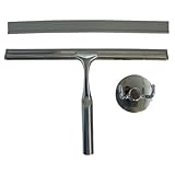 Perfect for removing water spots and soap film from glass, mirror, tile and marble surfaces. Chrome plated zinc cast handle. Polished stainless steel blade holder with a 10 inch genuine rubber blade. Non-slip cushion grip for ease of use. Guaranteed rust free and tarnish free. Includes an attractive chrome suction hook for easy in shower hanging.