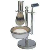 (More customer reviews)The product is made in China, which is a bit disappointing, considering the price. The overall look is nice and we like that the soap dish is built in. The razor only fits an older style blade and the blade constantly slides off it. After a few months the brush started to fall apart - we will need a new one in less than a year.